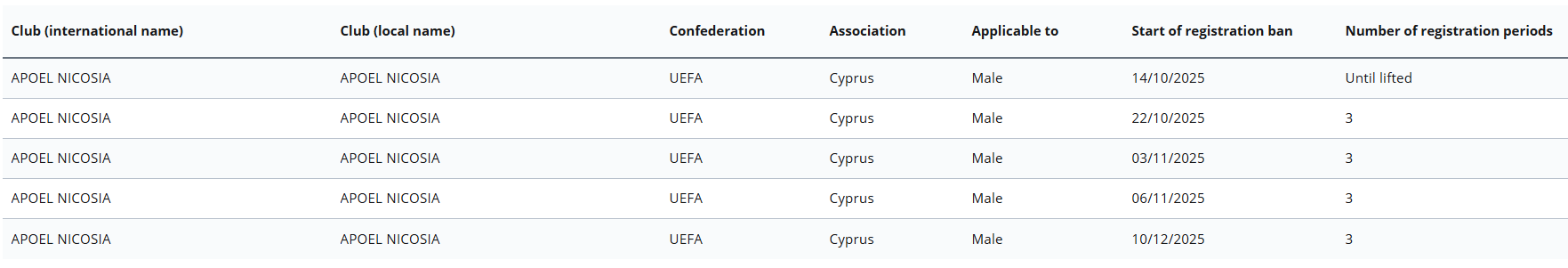 Πλέον, ο ΑΠΟΕΛ καλείται να βρει λύσεις για την άρση του εμπάργκο μεταγραφών για… πολλούς και ευνόητους λόγους.