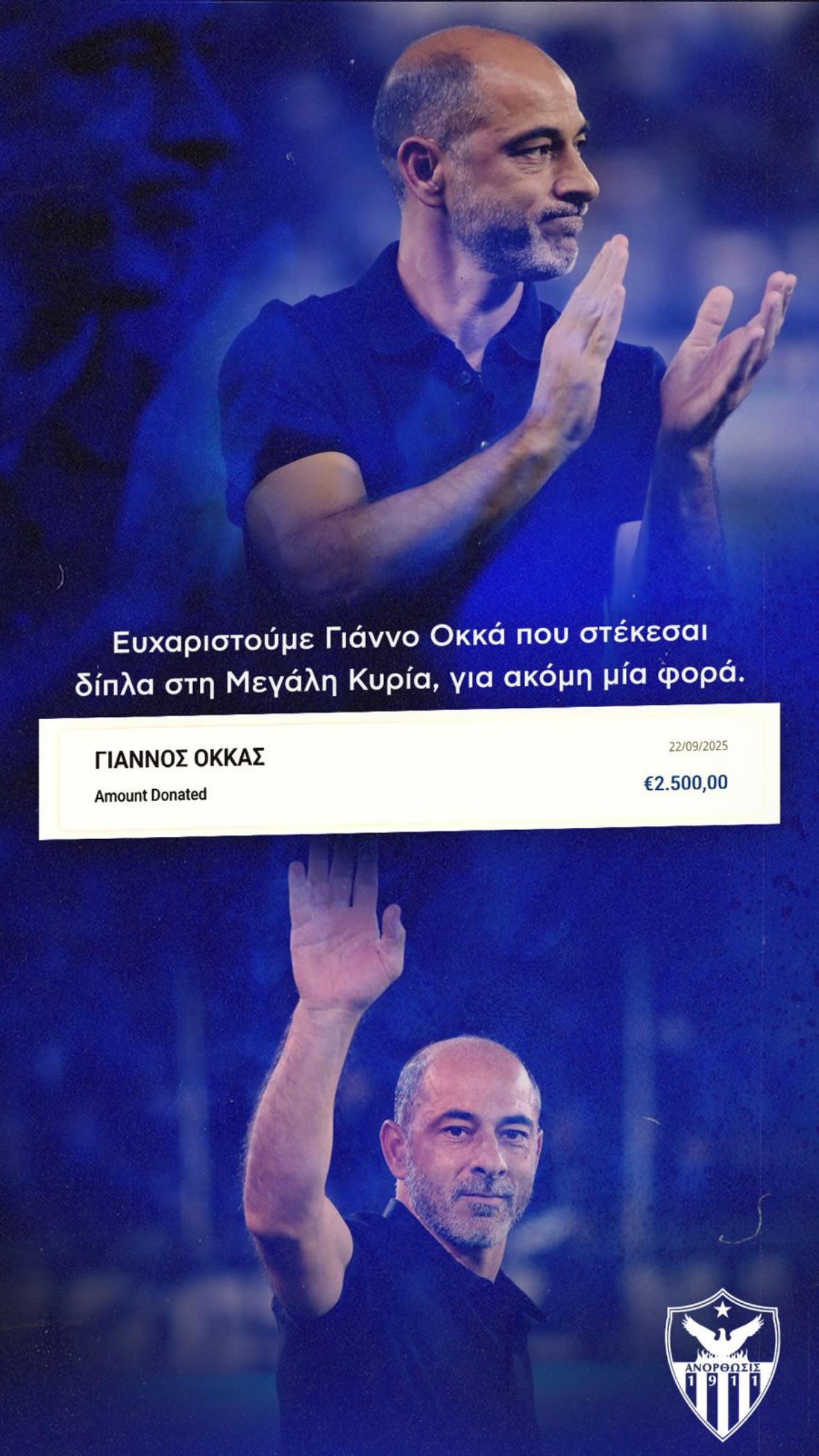 Αυτή τη φορά ήταν η σειρά του Γιάννου Οκκά, ο οποίος έκανε δωρεά €2.500 στην ομάδα της Αμμοχώστου.
