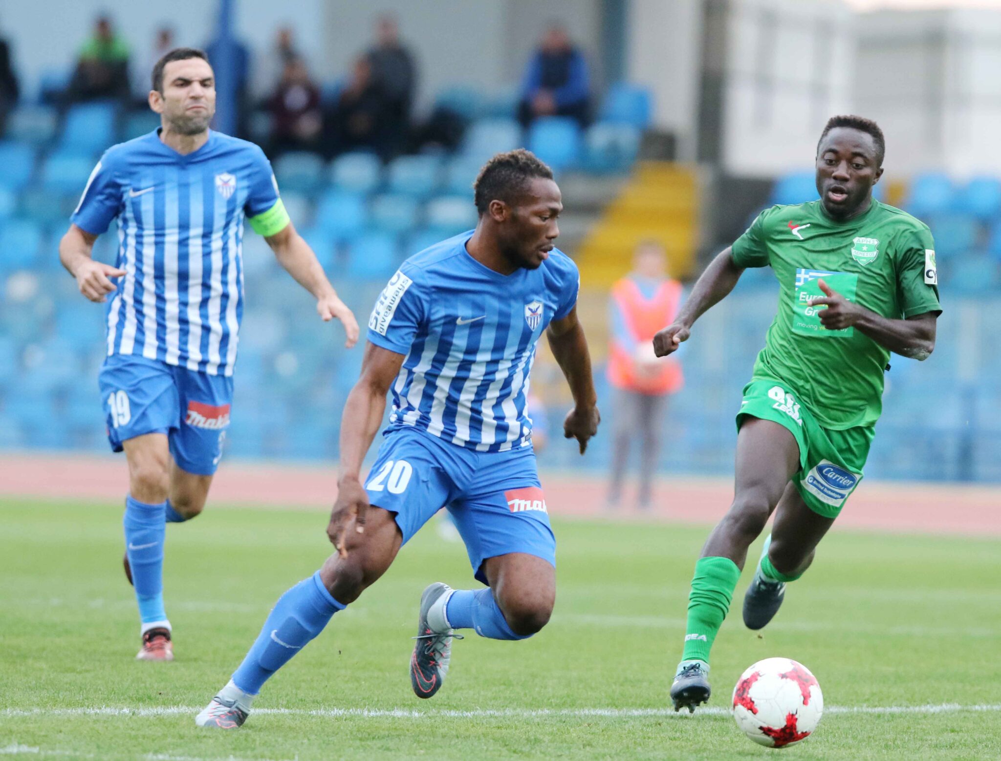 Στο 32’ μετά από γύρισμα στην περιοχή του Σισέ ο Βίκτορ προσπάθησε να κάνει με την μια το σουτ όμως ο Ευσταθίου έδιωξε σε κόρνερ.
