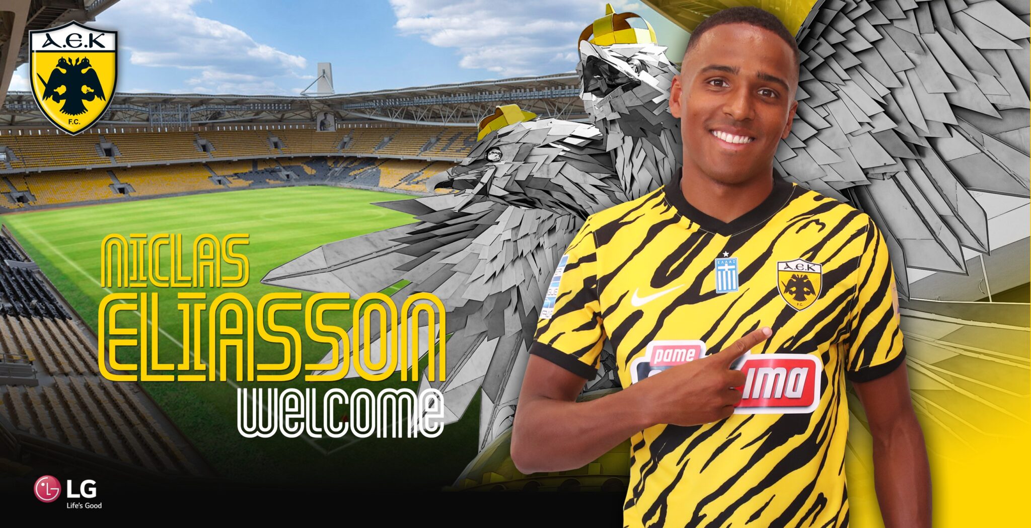 «Η ΠΑΕ ΑΕΚ ανακοινώνει την απόκτηση του ποδοσφαιριστή Νίκλας Ελίασον από τη γαλλική Νιμ. Ο Σουηδός ακραίος μέσος υπέγραψε συμβόλαιο συνεργασίας με την ομάδα μας έως το καλοκαίρι του 2027.