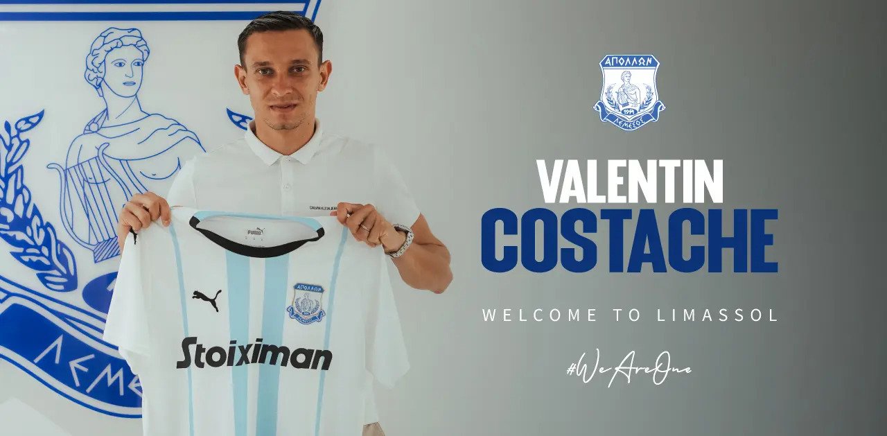 «Η Εταιρεία Απόλλων Ποδόσφαιρο (Δημόσια) Λτδ, ανακοινώνει την απόκτηση του ποδοσφαιριστή Βαλεντίν Κοστάκε μέχρι τον Μάιο του 2025 με προοπτική επέκτασης για ακόμη μια σεζόν.