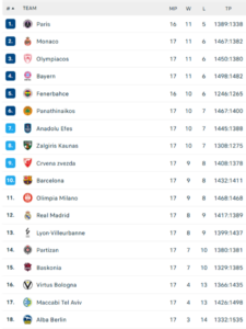 Μετά το αποτέλεσμα αυτό, οι «ερυθρόλευκοι» ανέβηκαν στο 11-6 και βρίσκονται πολύ κοντά στην πρώτη θέση με το φινάλε του πρώτου γύρου, αφού η Παρί, που είναι τυπικά πρωτοπόρος, έχει ρεκόρ 11-5 με ματς λιγότερο, μετά την αναβολή της αναμέτρησης με τη Φενέρμπαχτσε.
