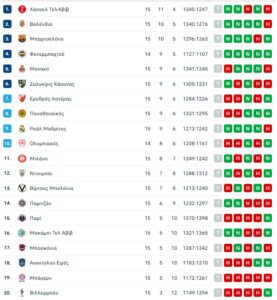 πώς διαμορφώθηκε η βαθμολογία μετά την 15η αγωνιστική