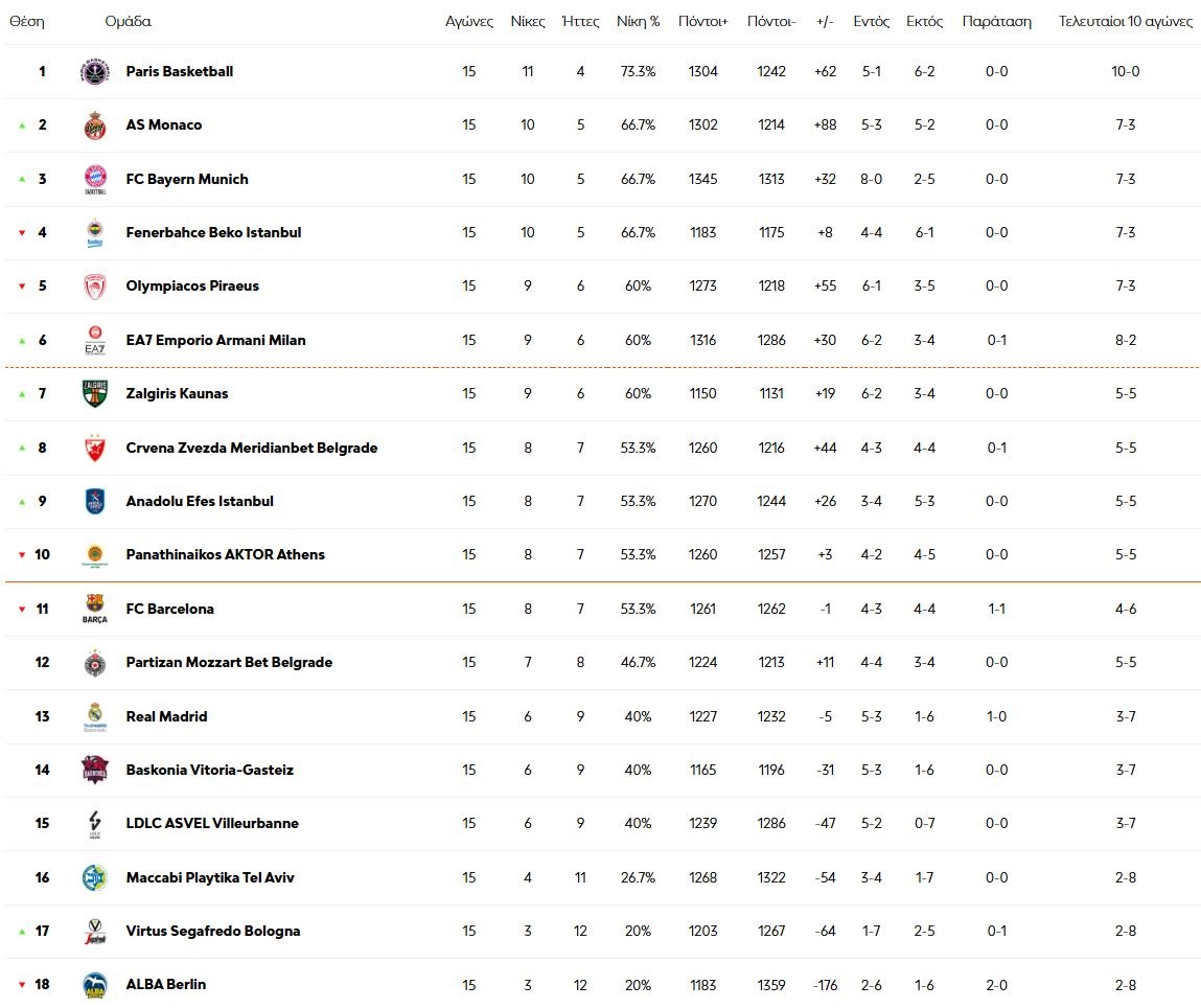 Με το φινάλε, λοιπόν, της 15ης αγωνιστικής, αμφότεροι έπεσαν στη βαθμολογία, ο 5ος Ολυμπιακός στο 9-6 και ο 10ος Παναθηναϊκός στο 8-7. Όπως μπορείτε να διαπιστώσετε, βέβαια, στην κατάταξη γίνεται ένας χαμός με τις ισοβαθμίες και ενώ ακολουθεί «διαβολοβδομάδα»!