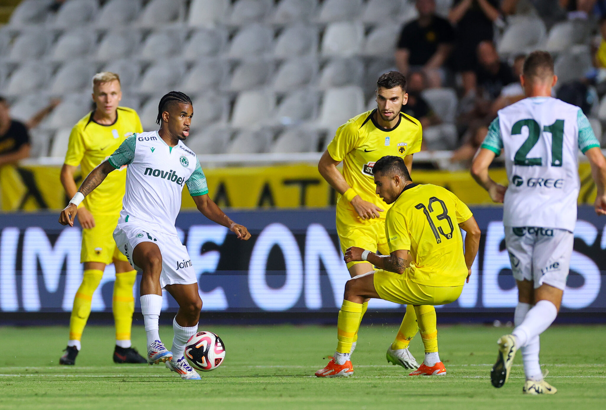 ΑΕΚ (Ματίας Αλμέιδα):Μπρινιόλι (46′ Στρακόσια), Ρότα, Κάλενς, Βίντα, Χατζισαφί, Σιμάνσκι (62′ Κοϊτά), Γιόνσον (62′ Φερνάντες), Γκατσίνοβιτς (62′ Πινέδα), Λιούμπισιτς (62′ Γαλανόπουλος), Γκαρσία (62′ Μάνταλος), Ελίασον (62′ Άμπραμπατ).