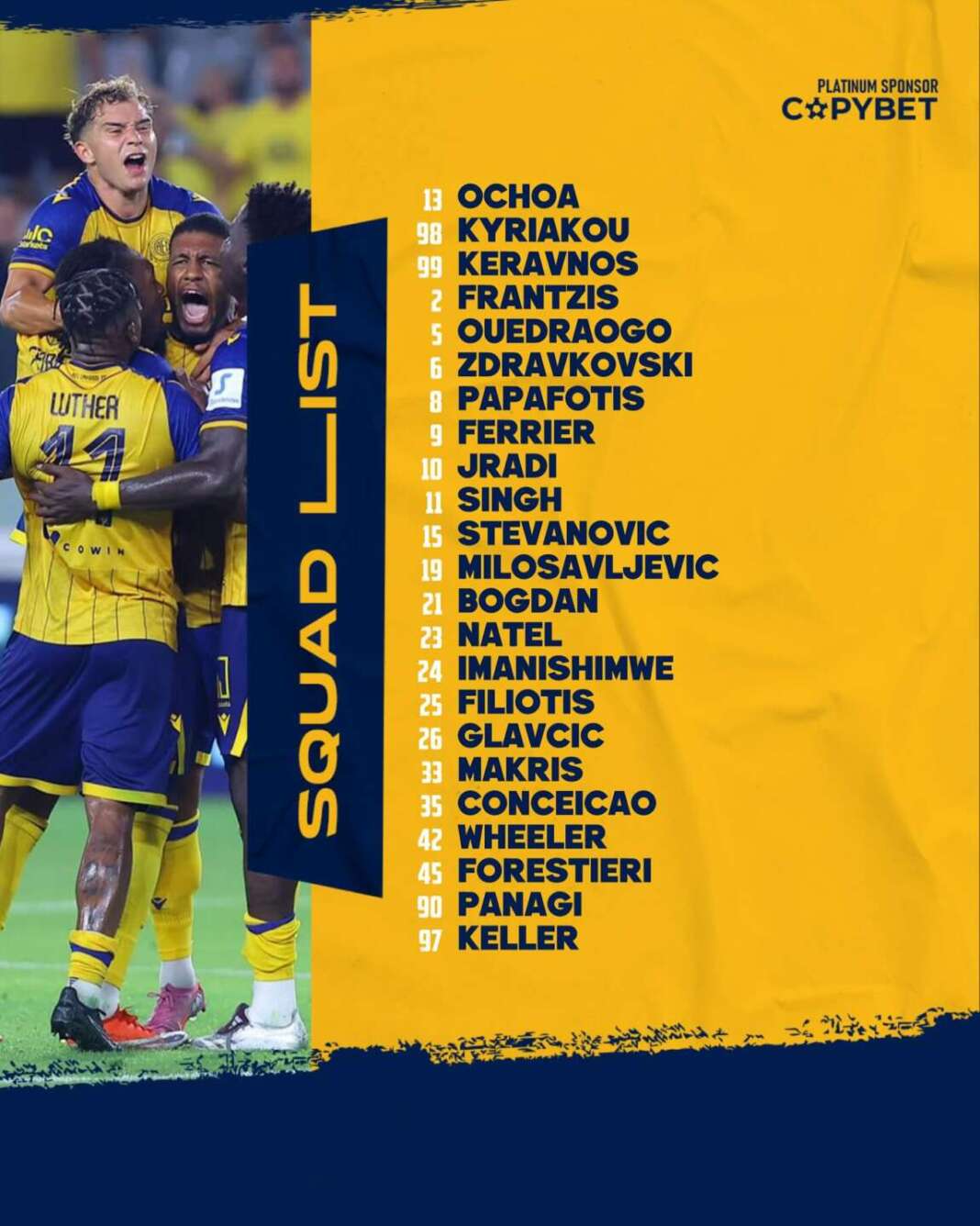 Σύμφωνα με την ενημέρωση από τους «γαλαζοκίτρινους», δεν υπολογίζει στους Ντένις Τομάλα, Τζούλιους Ζόκε, Σάββα Χριστοδούλου, Στέλιο Παναγιώτου και Κύπρο Νεοφύτου.