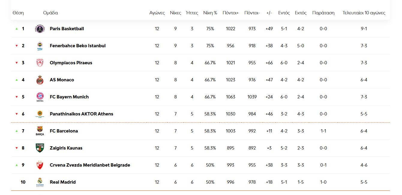 Δεν εκμεταλλεύτηκαν, έτσι, ούτε την ήττα της Φενέρμπαχτσε εντός έδρας από την Αρμάνι(85-91), που είχε ως αποτέλεσμα οι Τούρκοι να έχουν συγκάτοικο πλέον στην κορυφή την εκπληκτική Παρί.