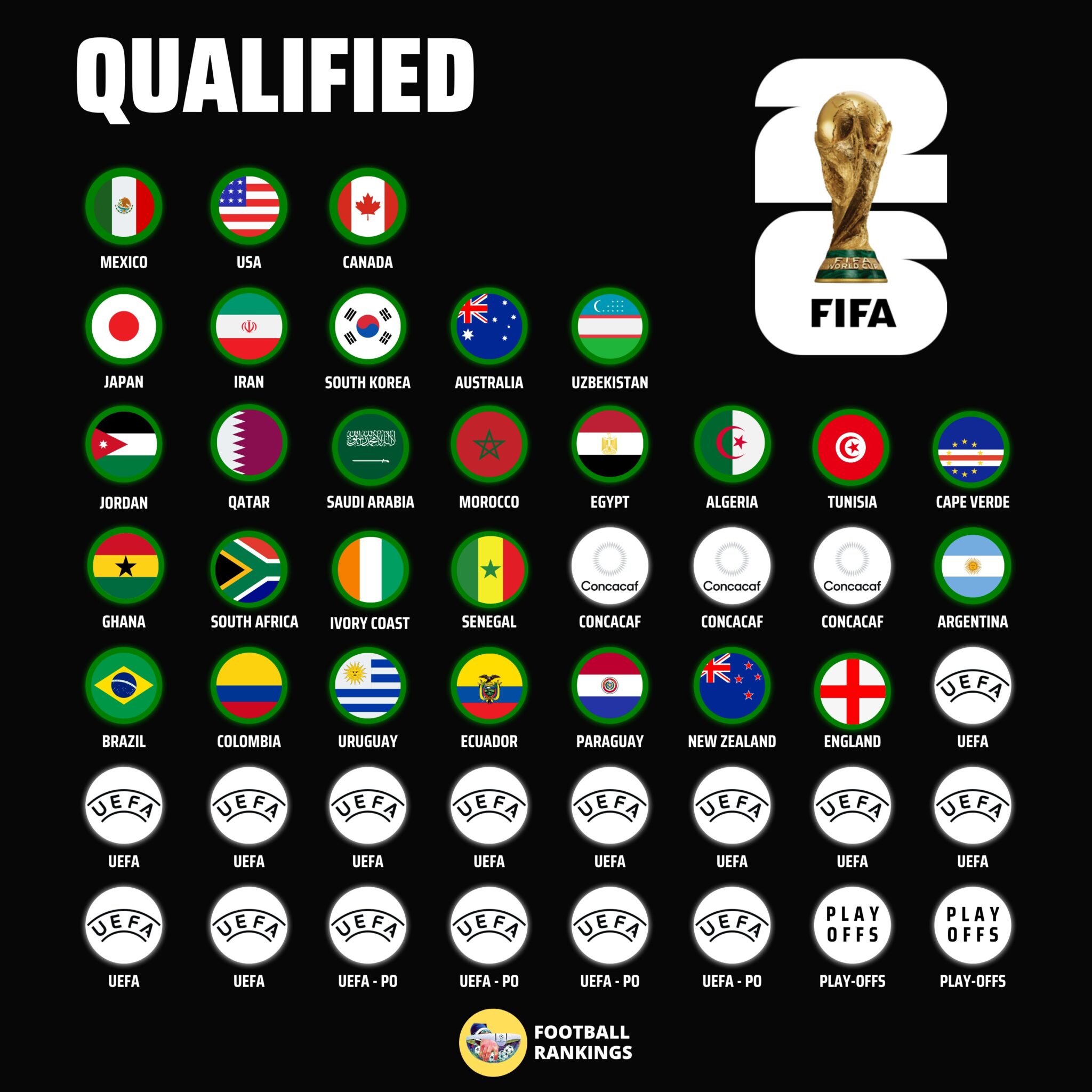 Την πρόκριση για την τελική φάση έχουν εξασφαλίσει έως τώρα 28 ομάδες. Πλέον, απομένουν 20 εισιτήρια που αναζητούν κάτοχο για να προκύψουν οι 48 ομάδες που θα λάβουν μέρος στη διοργάνωση.
