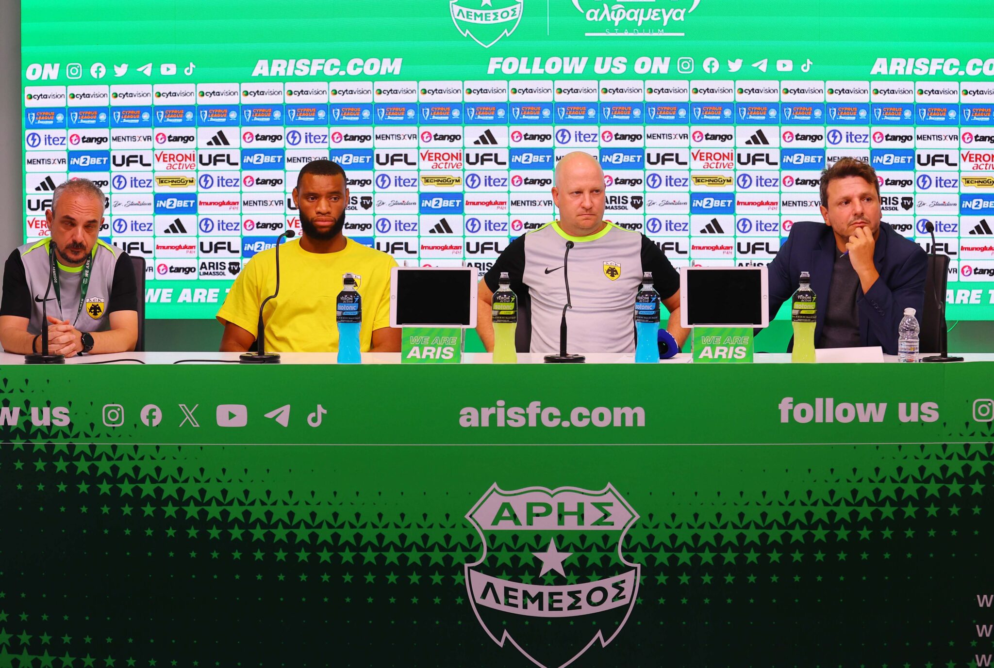 Για το αν έχει μελετήσει τις επιθετικές αρετές του Άρη Λεμεσού και ποιους παίκτες πρέπει να προσέξει η ΑΕΚ: «Πάντα προετοιμαζόμαστε για κάθε αντίπαλο. Έχουν ποιότητα και ταχύτητα στα άκρα. Η δουλειά που κάνουμε καθημερινά είναι αυτή που μας οδηγεί συν κάποιες προσαρμογές στον αντίπαλο».