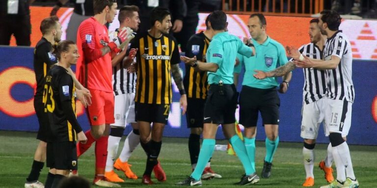 Ο διαιτητής Κομίνης μέτρησε, τελικά, το γκολ του Βαρέλα στο 90’ και ο ΠΑΟΚ και όπως τονίζει στο φύλλο αγώνα διέκοψε τον αγώνα την ώρα της εισόδου του Ιβάν Σαββίδη στον αγωνιστικό χώρο.