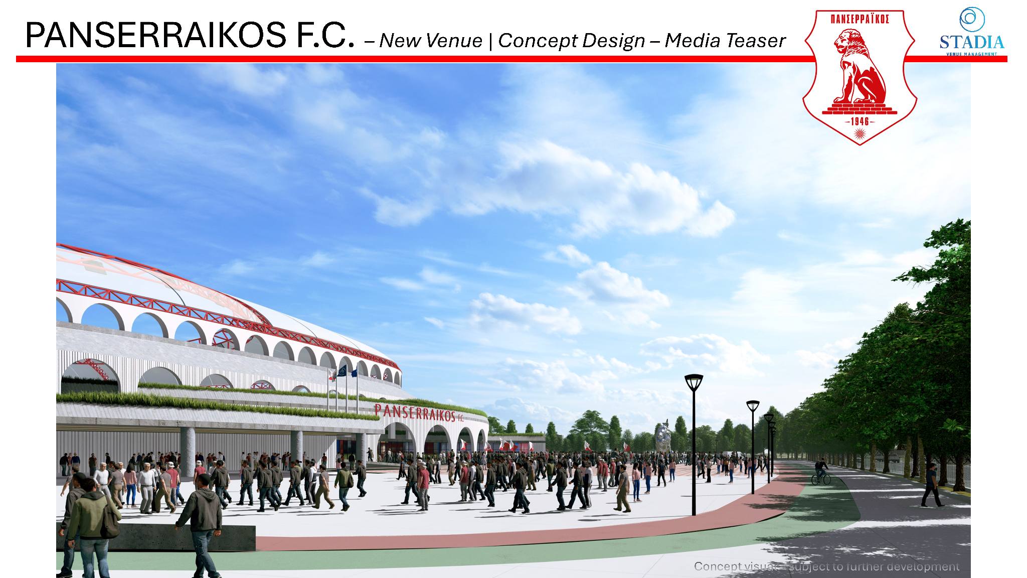 Οι πρώτες εικόνες του νέου γηπέδου του Πανσερραϊκού αποτυπώνουν κάτι πολύ μεγαλύτερο από μια απλή αθλητική εγκατάσταση. Το concept δείχνει έναν σύγχρονο, ανοιχτό χώρο, ενταγμένο στον αστικό ιστό, σχεδιασμένο ώστε να λειτουργεί καθημερινά ως σημείο αναφοράς για την πόλη και όχι μόνο τις ημέρες αγώνων.