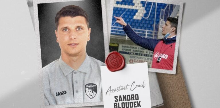 Ο Sandro Bloudek, 36 ετών, συνεχίζει και ϕέτος ως βοηθός προπονητή για την ΠΑΦΟΣ FC. Είναι πρώην Σλοβένος ποδοσϕαιριστής ο οποίος ξεκίνησε την καριέρα του στη Σλοβενία ​​και τη NK Maribor και αγωνίστηκε στην εθνική ομάδα της Σλοβενίας στις ηλικίες Κ16 έως και Κ21.