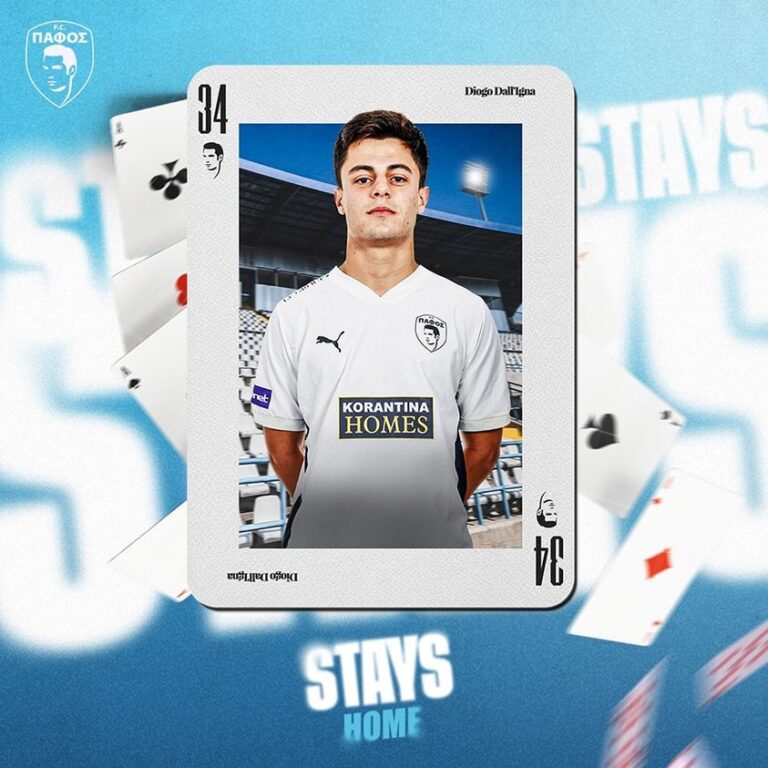 H ανακοίνωση της ομάδας: «Η ΠΑΦΟΣ FC ανακοινώνει την επέκταση της συμφωνίας με τον νεαρό, υποσχόμενο, Βραζιλιάνο ποδοσφαιριστή Diogo Dall’Igna για 3 χρόνια με δικαίωμα ανανέωσης για έναν επιπλέον, του οποίου παίκτη οι προσπάθειες και οι αγωνιστικές εμφανίσεις ανταμείβονται με τον καλύτερο τρόπο.