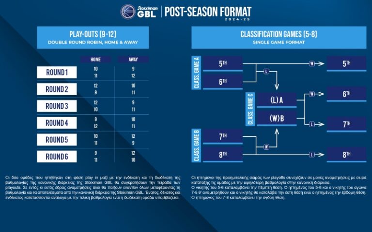 Τέσσερις αγωνιστικές πριν από την ολοκλήρωση της κανονικής περιόδου της φετινής Stoiximan GBL, ο ΕΣΑΚΕ υπενθυμίζει το format της post season.