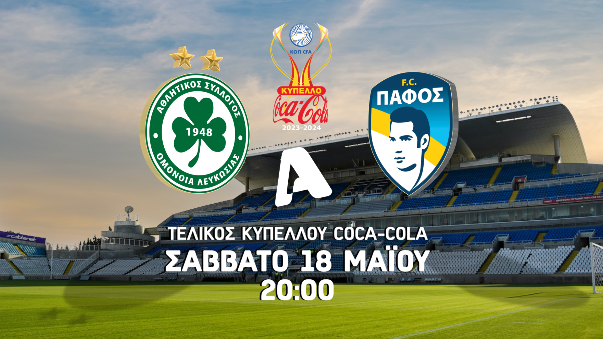 Κλείνει απόψε και… επίσημα η αγωνιστική περίοδος 2023-24 με τον τελικού κυπέλλου ανάμεσα σε Ομόνοια και Πάφο ο οποίος θα διεξαχθεί στο ΓΣΠ (20:00) και θα μεταδοθεί ζωντανά και αποκλειστικά στον Alpha Κύπρου!
