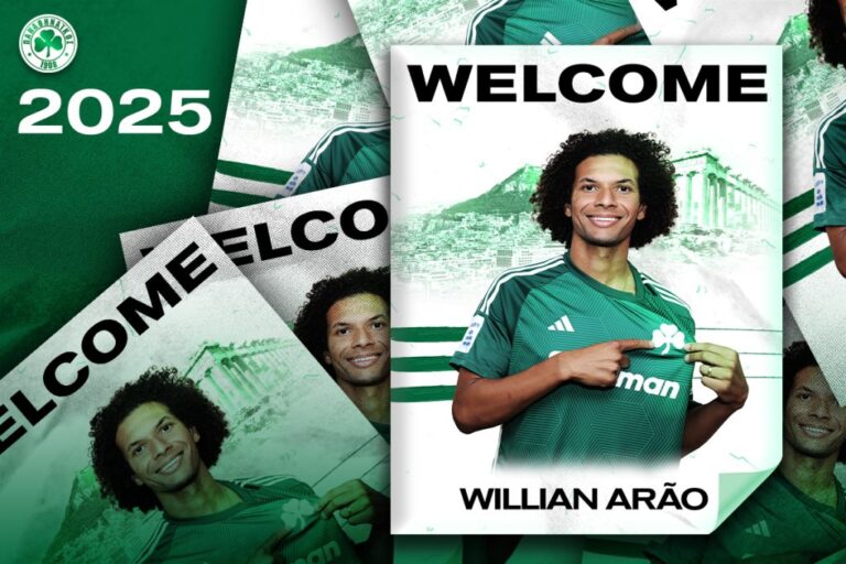 «Η ΠΑΕ Παναθηναϊκός ανακοινώνει την απόκτηση, με μετεγγραφή από την τουρκική Φενέρμπαχτσε, του Γουίλιαν Αράο. Ο 31χρονος Βραζιλιάνος μέσος υπέγραψε συμβόλαιο διάρκειας δύο ετών.