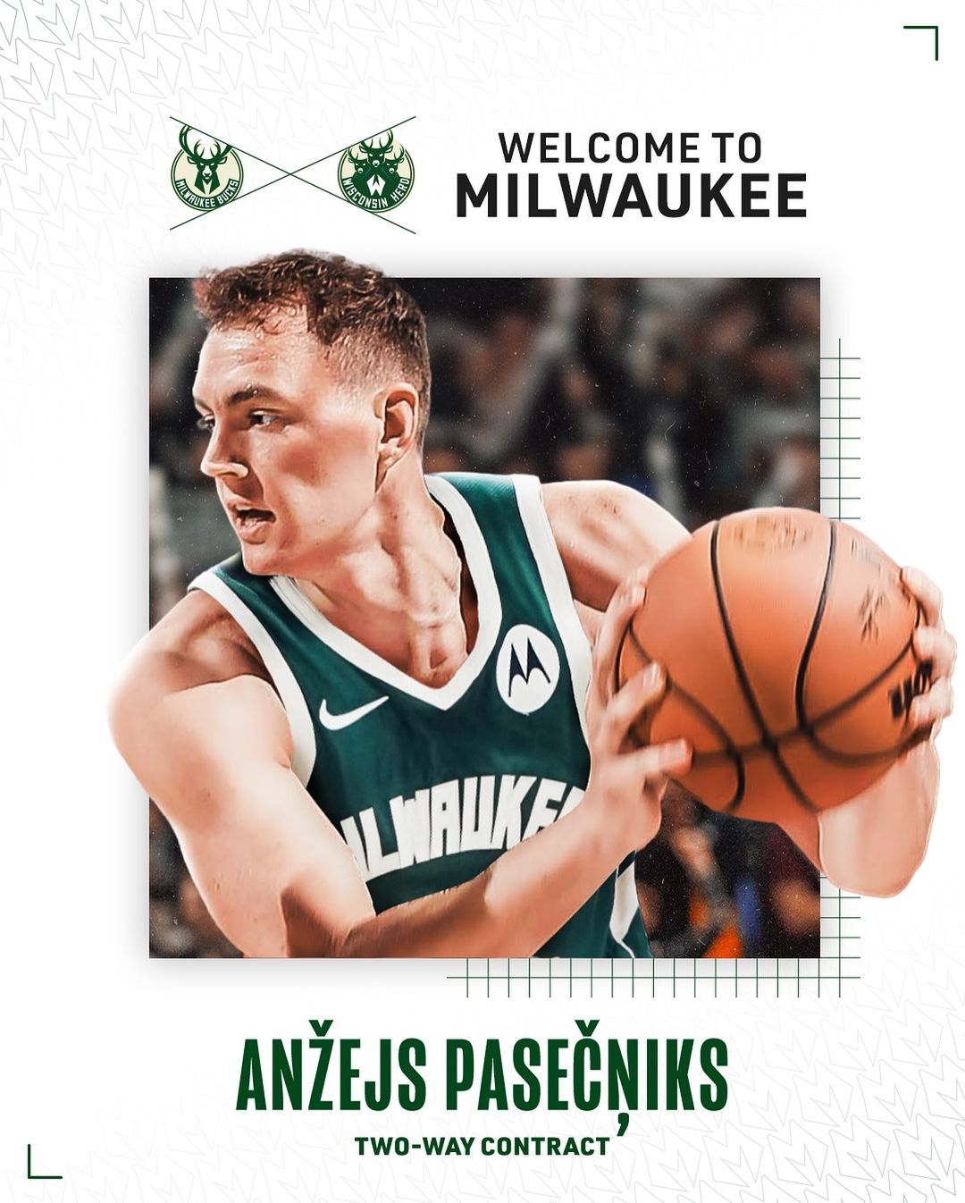 Ο Λετονός σέντερ (2,16μ.) υπέγραψε two-way συμβόλαιο, πράγμα που σημαίνει πως θα βρίσκεται μεταξύ της θυγατρικής του Μιλγουόκι (Wisconsin Heard) και της πρώτης ομάδας στο ΝΒΑ.