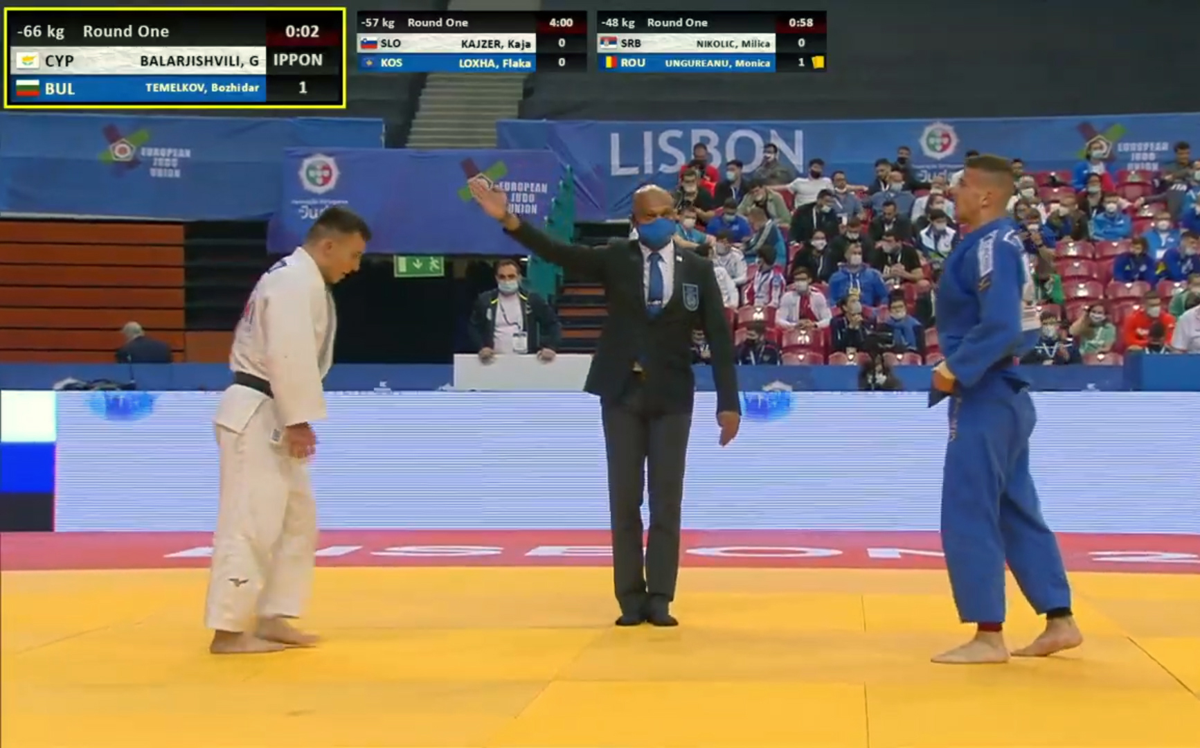 Στο Πανευρωπαϊκό Πρωτάθλημα Τζούντο συμμετείχαν 359 τζουντόκα από 45 χώρες, με τις κερκίδες στην αρένα στη Λισαβόνα να μένουν κενές, λόγω της πανδημίας και τους συμμετέχοντες να φοράνε μάσκες και να τηρούν την κοινωνική αποστασιοποίηση εκτός αγώνων.
