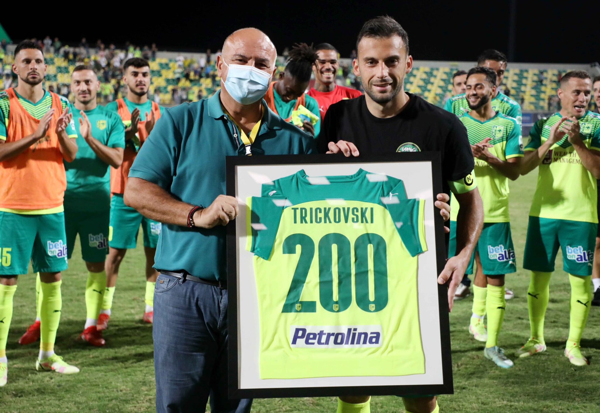 Μετά τη λήξη της αναμέτρησης η διοίκηση των «κιτρινοπράσινων» τίμησε τον Σκοπιανό αρχηγό της ομάδας για την προσφορά του στην ΑΕΚ.