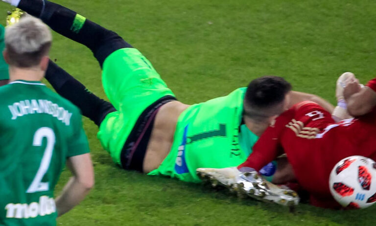 Στο 48′ της αναμέτρησης ο Νάτχο συγκρούστηκε με τον Διούδη. Ο Ισραηλινός χαφ χτύπησε άθελα τον πορτιέρε του Παναθηναϊκού στο πρόσωπο, ενώ δευτερόλεπτα μετά ο Λάζαρος σκόραρε χωρίς το γκολ να μετρήσει. Ήταν η στιγμή που «πάγωσε» το Καραϊσκάκη.