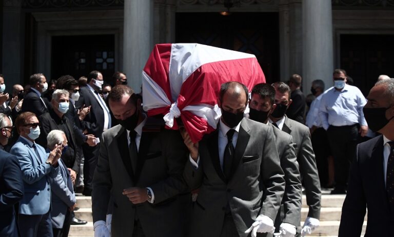 Η εξόδιος ακολουθία έγινε σήμερα Πέμπτη (20/8) στην Ιερά Μητρόπολη Αθηνών με σύσσωμη την οικογένεια του Ολυμπιακού και πλήθος κόσμου να συγκεντρώνεται για να απευθύνει το ύστατο χαίρε στον επίτιμο πρόεδρο της «ερυθρόλευκης» ΠΑΕ και έναν από τους πιο πιστούς στρατιώτες της ομάδας.