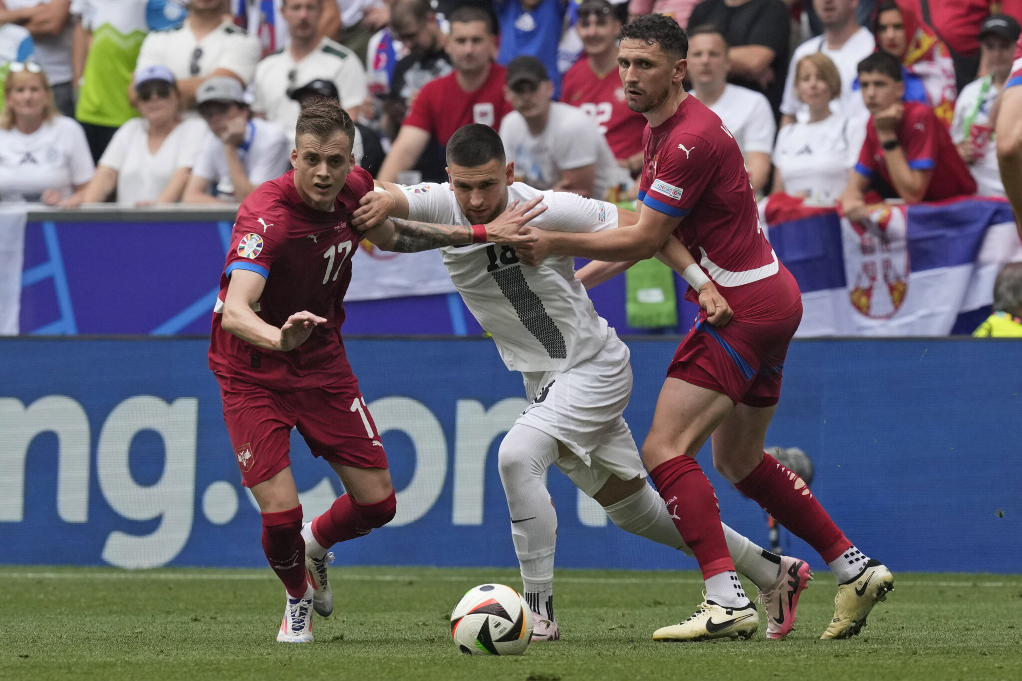 Το ξέσπασμά τους πάντως δεν είχε διάρκεια, κι έτσι αφού στο 59’ ο Ραΐκοβιτς απέκρουσε με το ένα χέρι σουτ του Σέσκο δέκα λεπτά αργότερα (69΄), μετά τη σέντρα του Έλσνικ από τα αριστερά, ο Κάρνιτσνικ στο δεύτερο δοκάρι νίκησε τον τερματοφύλακα των Σέρβων για το 1-0.