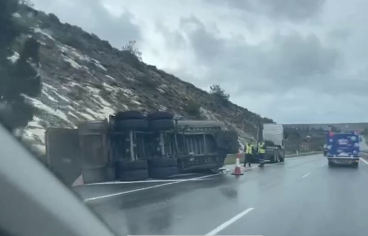 Έκλεισαν και οι δύο λωρίδες του αυτοκινητόδρομου μετά από ανατροπή φορτηγού