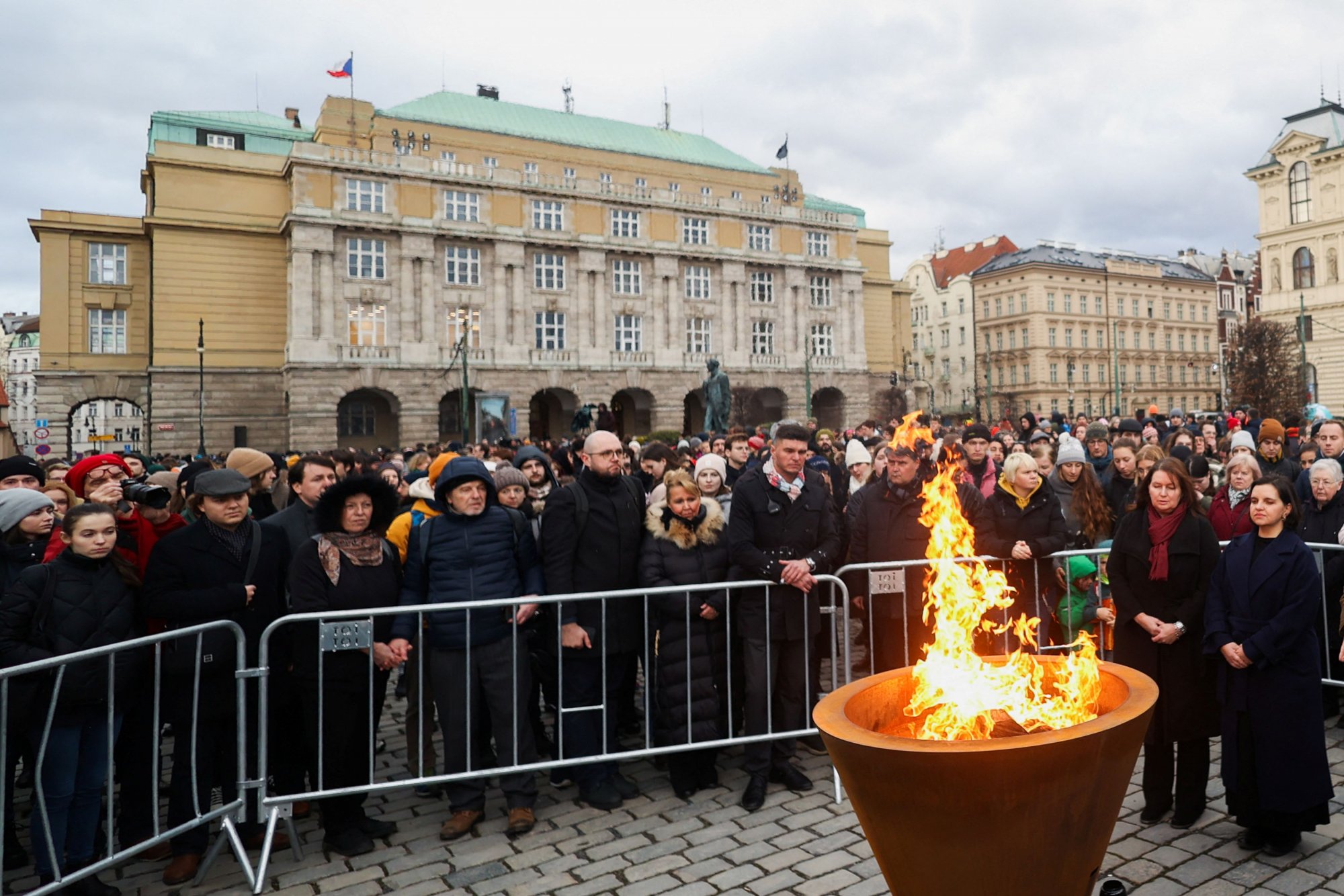 Σχημάτισαν ανθρώπινη αλυσίδα στη μνήμη των 14 θυμάτων του μακελειού στην Πράγα