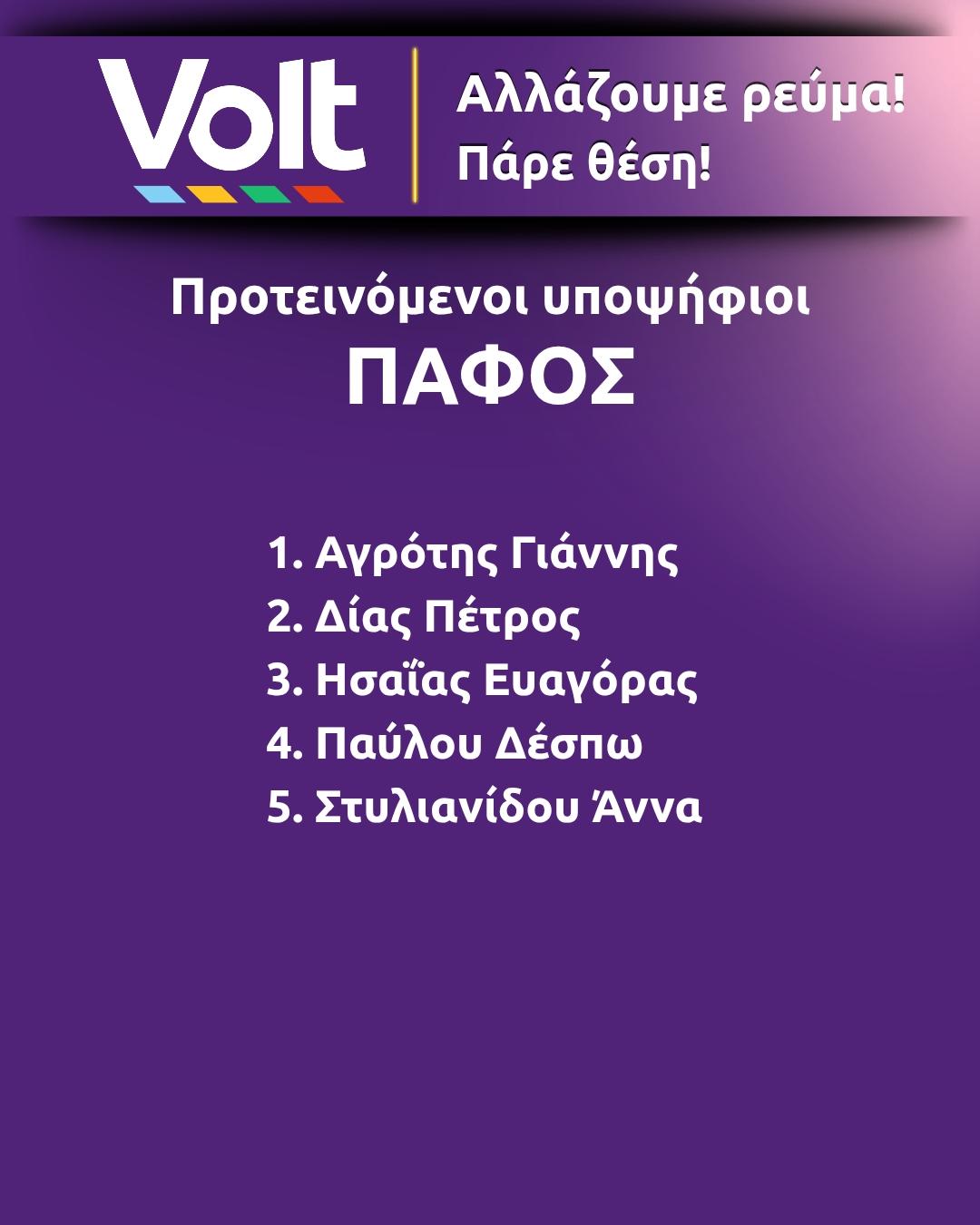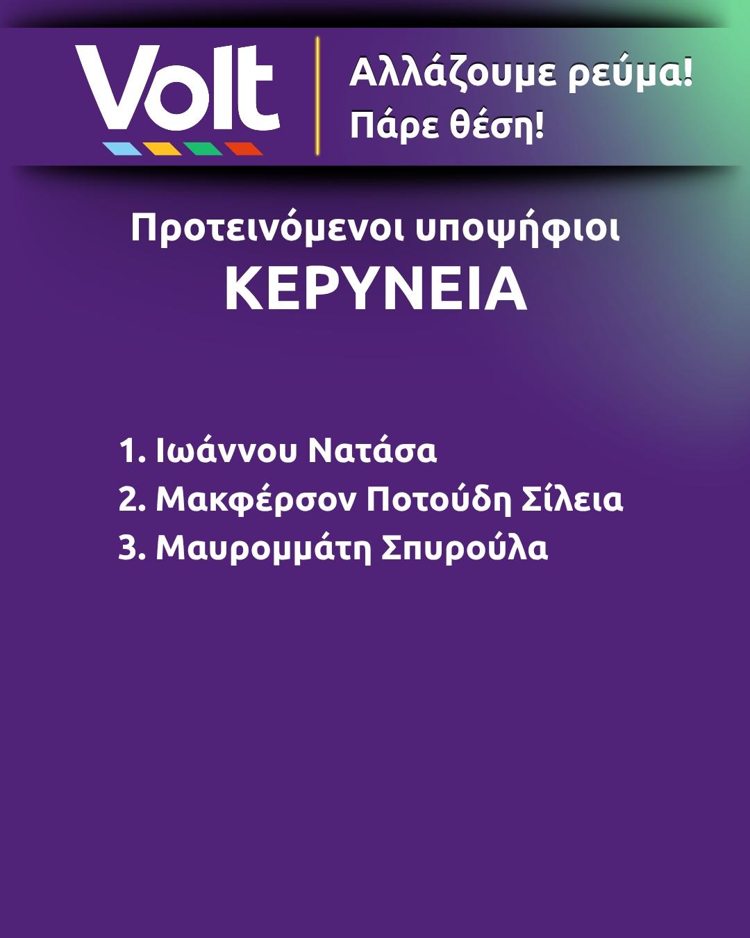 «Σε μια περίοδο έντονης δυσπιστίας, το Volt καταθέτει ένα ψηφοδέλτιο ευθύνης. Η ψήφος στο Volt δεν είναι διαμαρτυρία. Είναι στάση ευθύνης και επιλογή σοβαρής πολιτικής παρουσίας.»