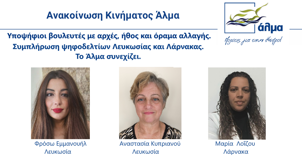 Πρόκειται όπως σημειώνει το Κίνημα, «για πρόσωπα που ενστερνίζονται και αντανακλούν τις αξίες, τις ιδέες και το όραμα για αλλαγή της χώρας που πρεσβεύει το Άλμα και που μπορούν να εκπροσωπήσουν την κοινωνία και να υπερασπιστούν το δημόσιο συμφέρον στη νέα Βουλή με αξιοσύνη, παρρησία, εντιμότητα και πολιτικό ήθος».