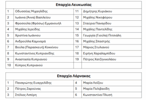 Με τις τρεις πιο πάνω υποψήφιες, συμπληρώνονται τα ψηφοδέλτια των επαρχιών Λευκωσίας