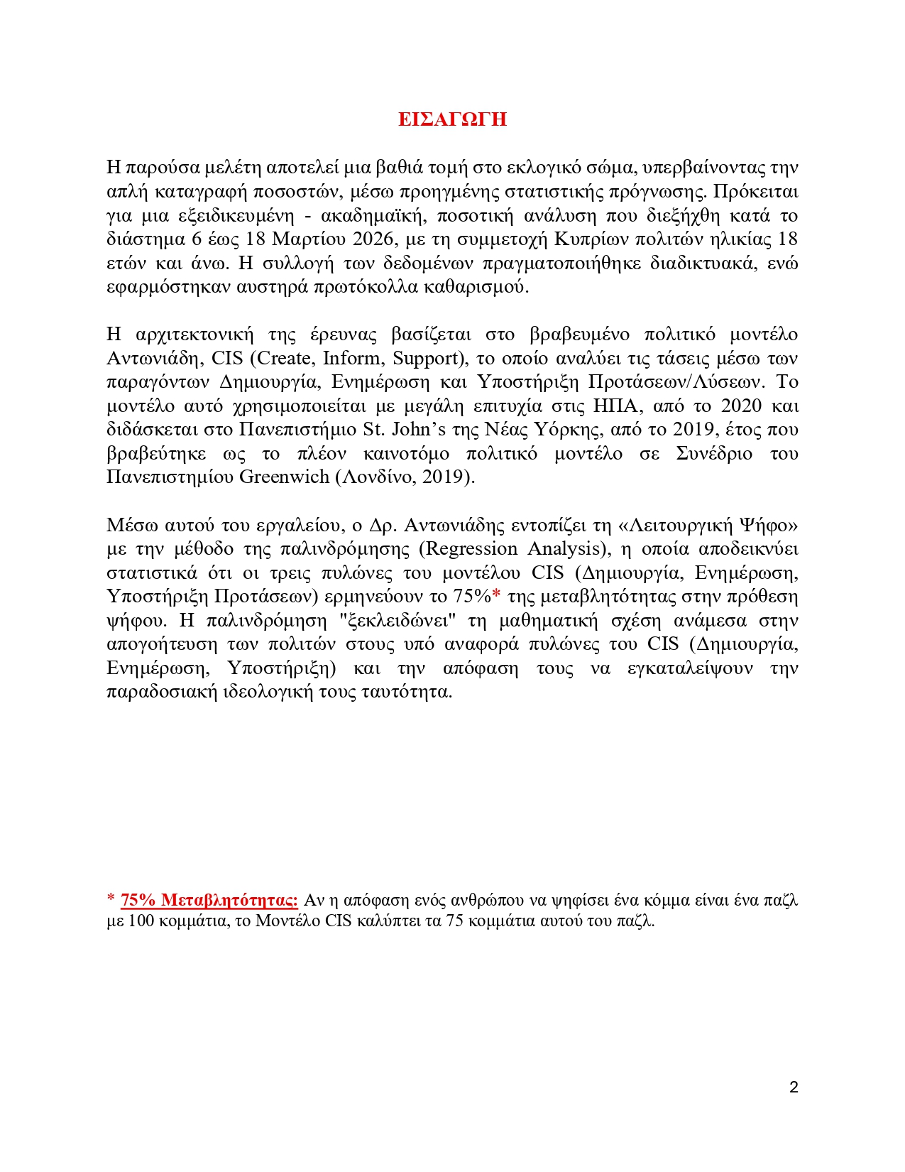 *75% Μεταβλητότητας: Αν η απόφαση ενός ανθρώπου να ψηφίσει ένα κόμμα είναι ένα παζλ με 100 κομμάτια, το Μοντέλο CIS καλύπτει τα 75 κομμάτια αυτού του παζλ.