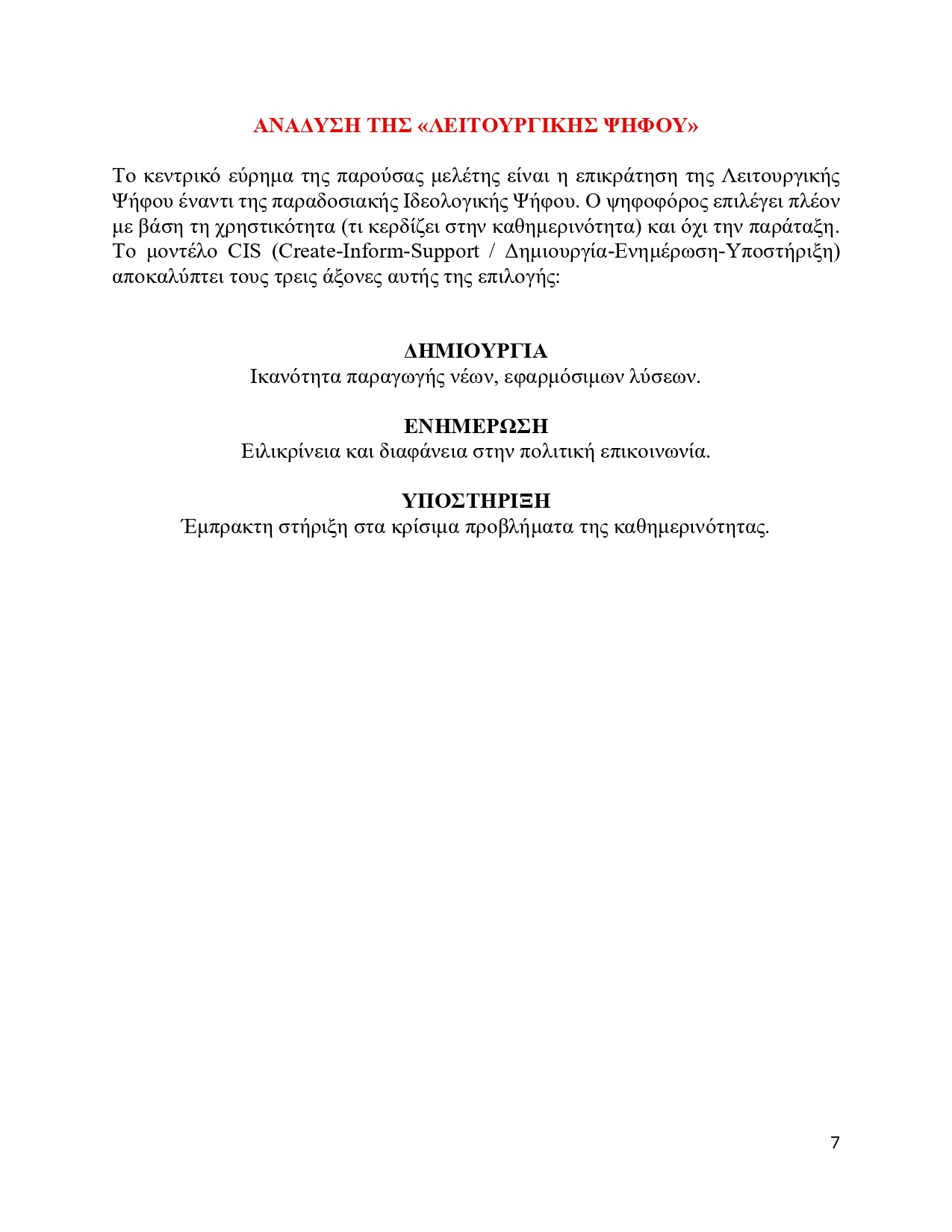 - ΔΗΜΙΟΥΡΓΙΑ: Ο ψηφοφόρος ψάχνει λύσεις και νέες προτάσεις.