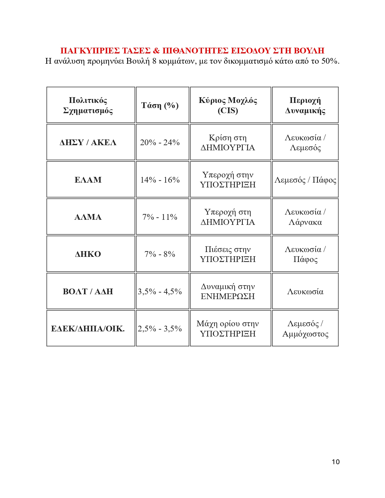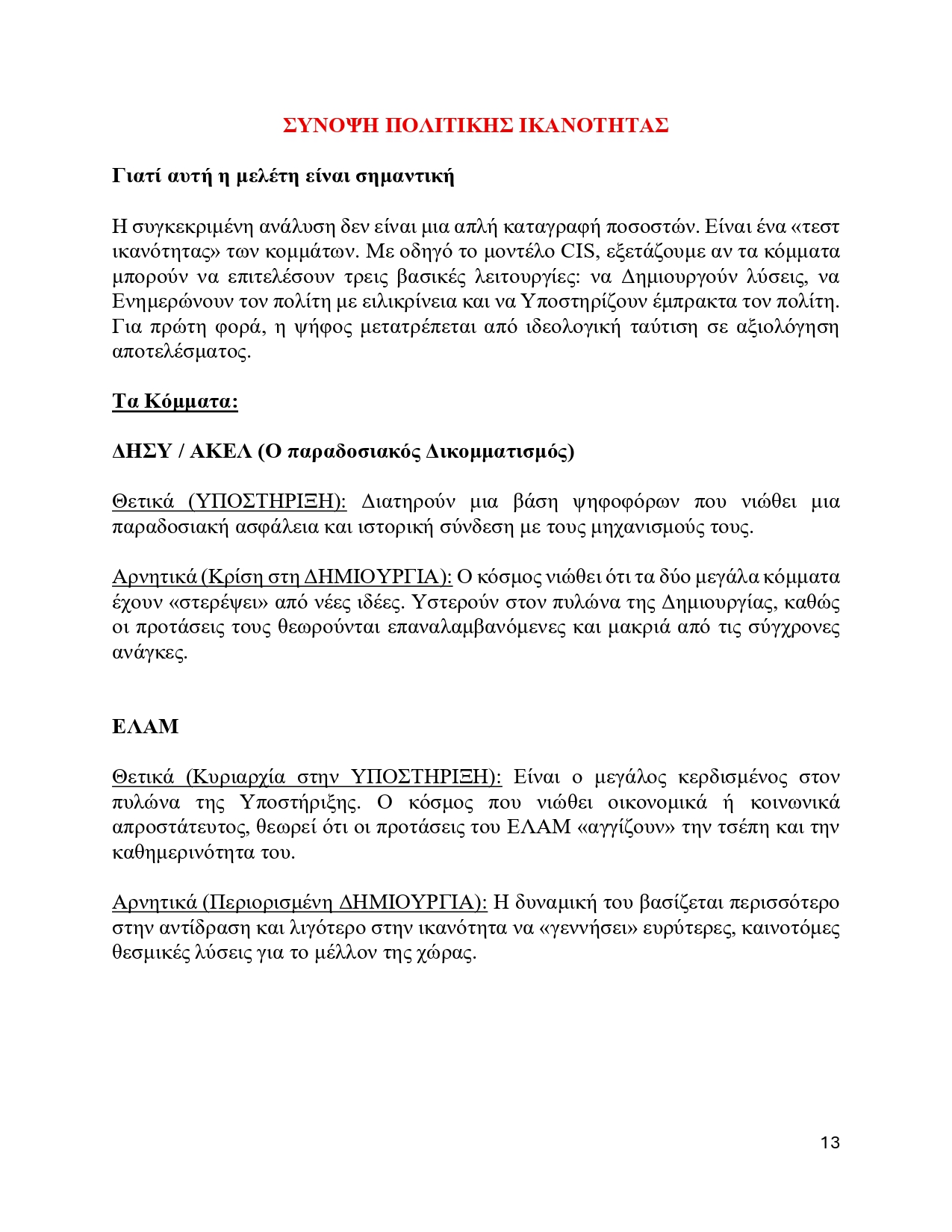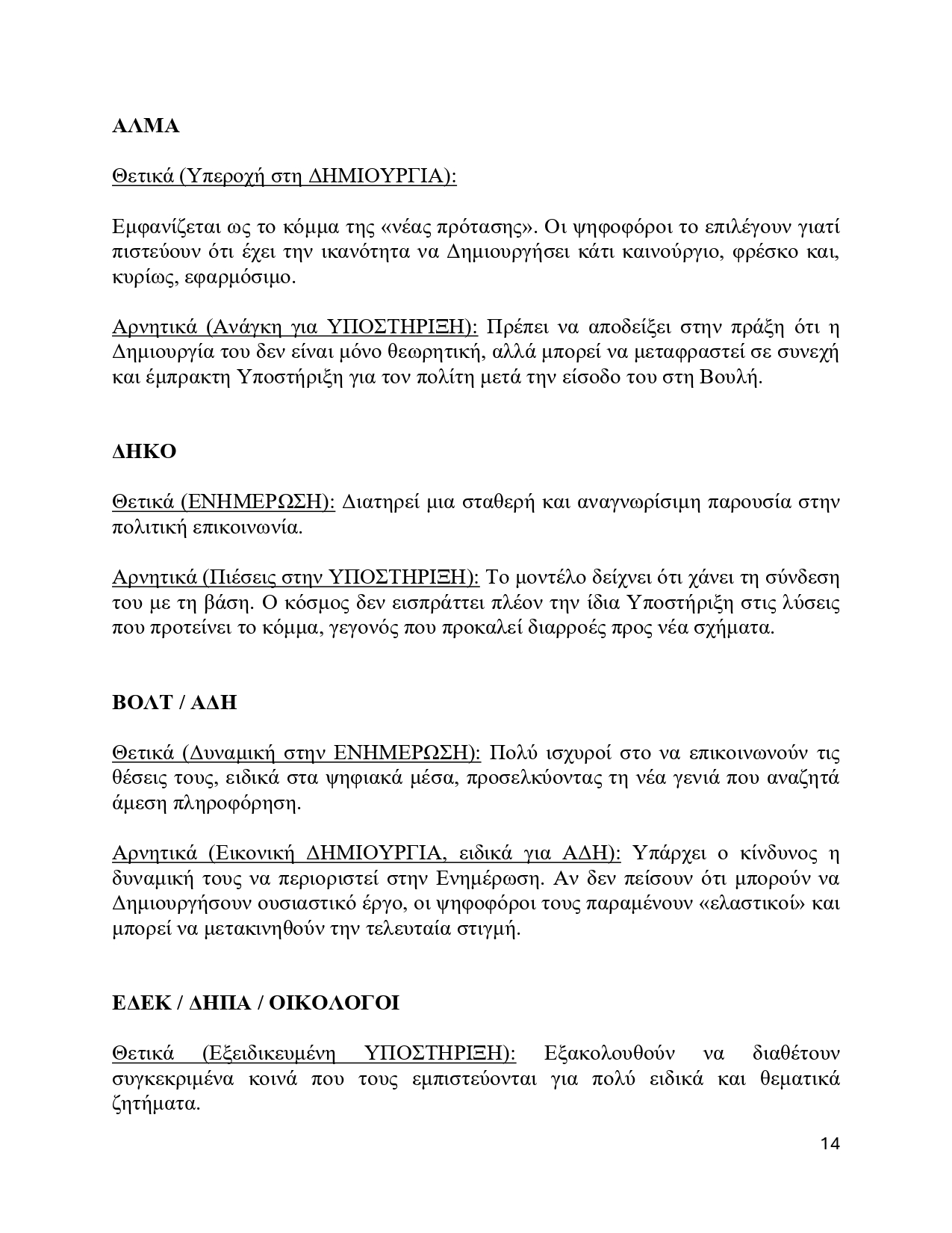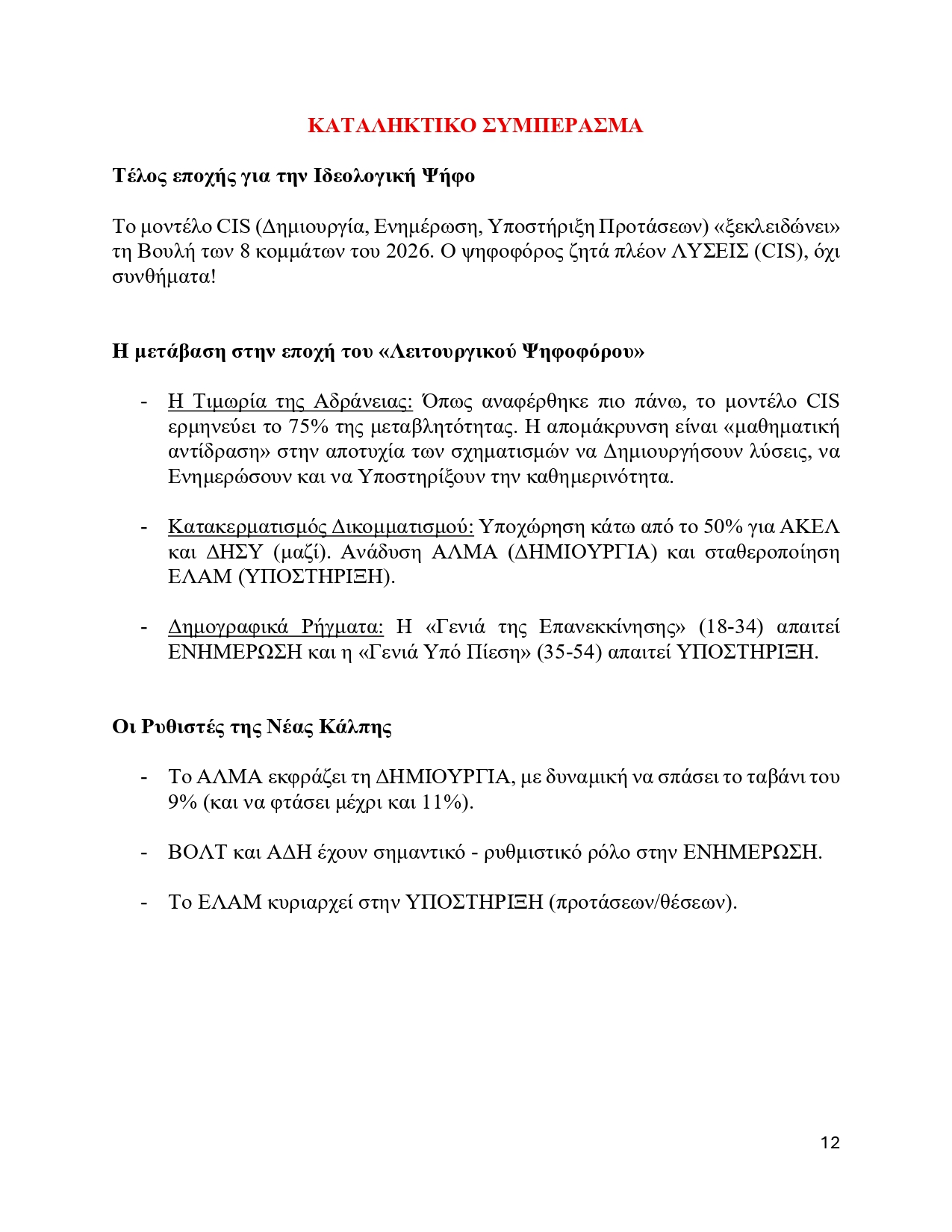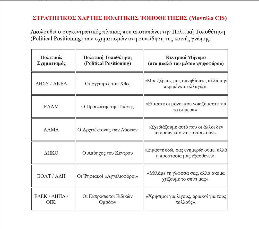 Τι κάνει σωστά (Υπεροχή στη Δημιουργία): Είναι η «φρέσκια πρόταση». Ο κόσμος το βλέπει σαν μια ομάδα που έχει όρεξη να κάτσει στο τραπέζι και να σχεδιάσει λύσεις που δεν έχουμε ξαναδεί. Αυτή η (τάση για) δημιουργικότητα είναι που του δίνει τη δυναμική για διψήφιο ποσοστό (έως και 11%).